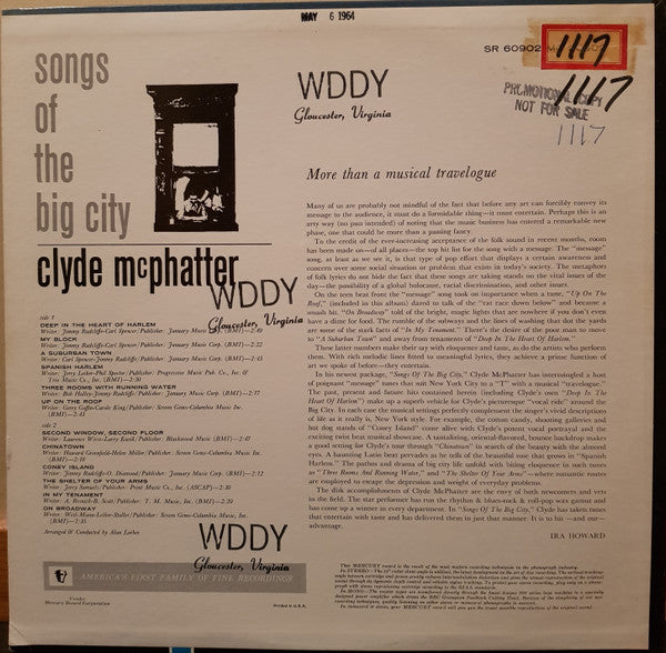 Clyde McPhatter - Songs Of The Big City (LP, Album, Mono) (Very Good Plus (VG+))