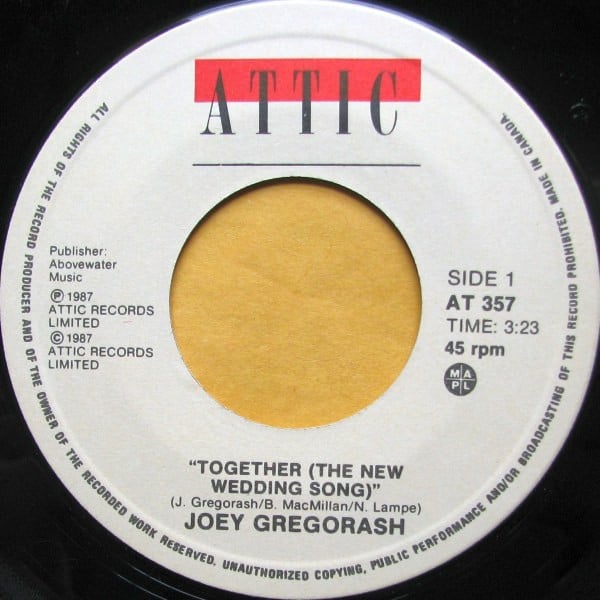 Joey Gregorash - Together (The New Wedding Song) (7") (Very Good (VG))