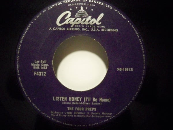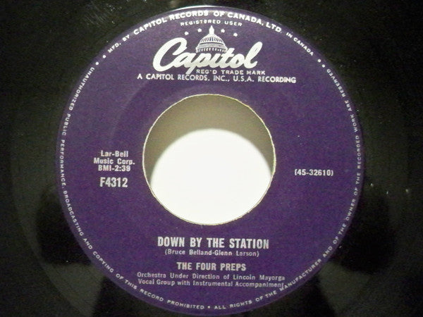 The Four Preps - Listen Honey (I'll Be Home) / Down By The Station (7", Single) (Very Good (VG))