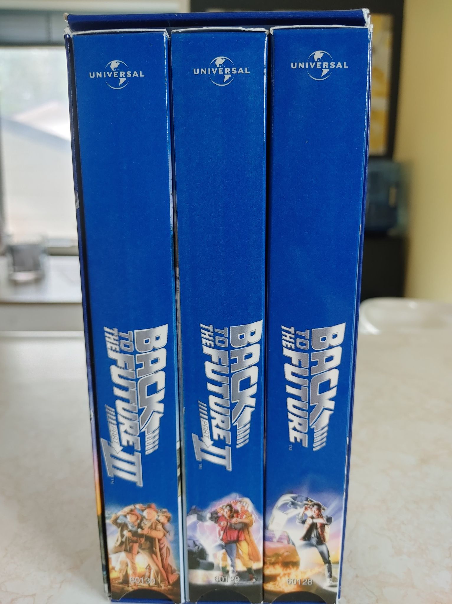 Back To The Future, 1-3 VHS combo pack. All in great, playable condition. Boxset has some fading and creasing.