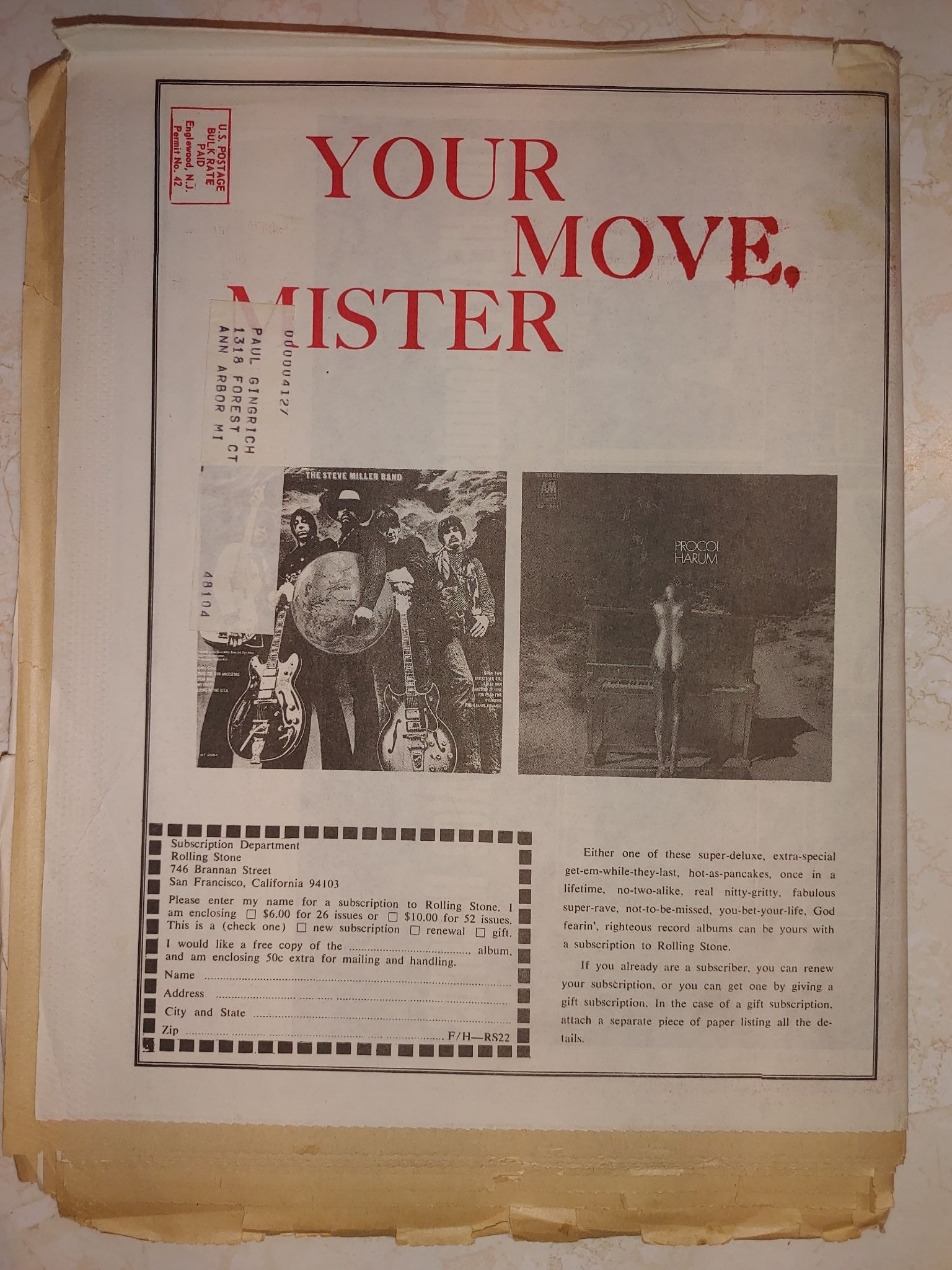 Extremely rare 1968 issue of Rolling Stone Magazine.